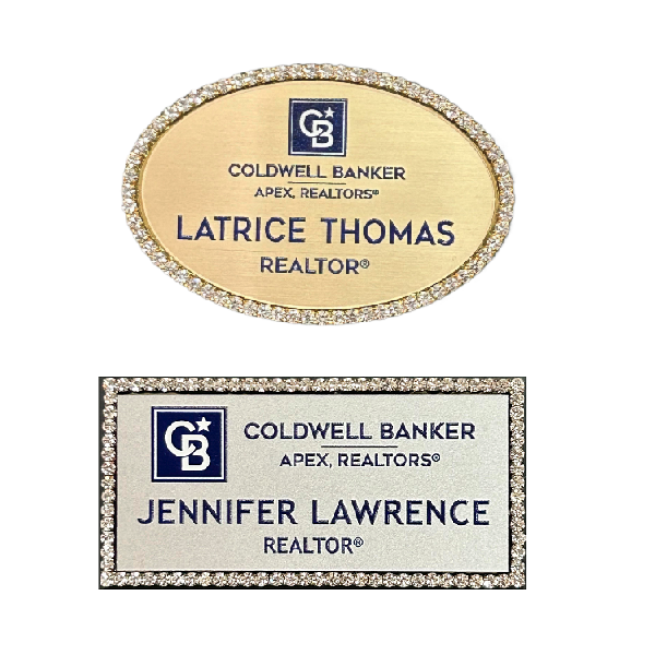 2-3/8" x 1-1/2" Badge set inside an eyecatching Bling Frame..
