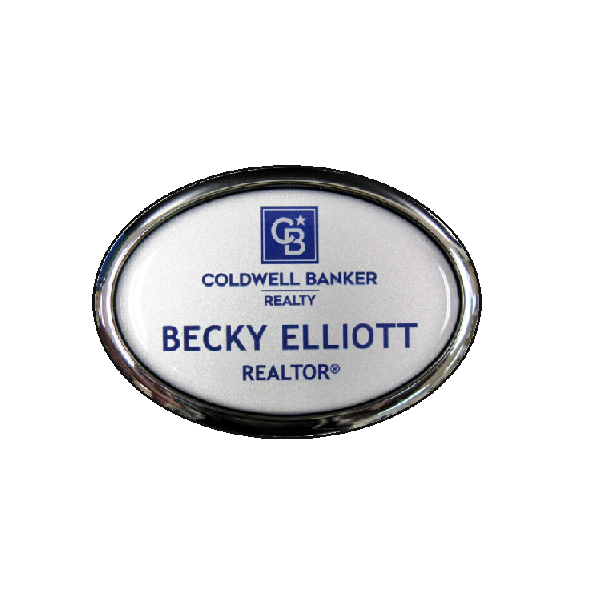 2-3/8" x 1-1/2" Badge set inside an Oval Frame.